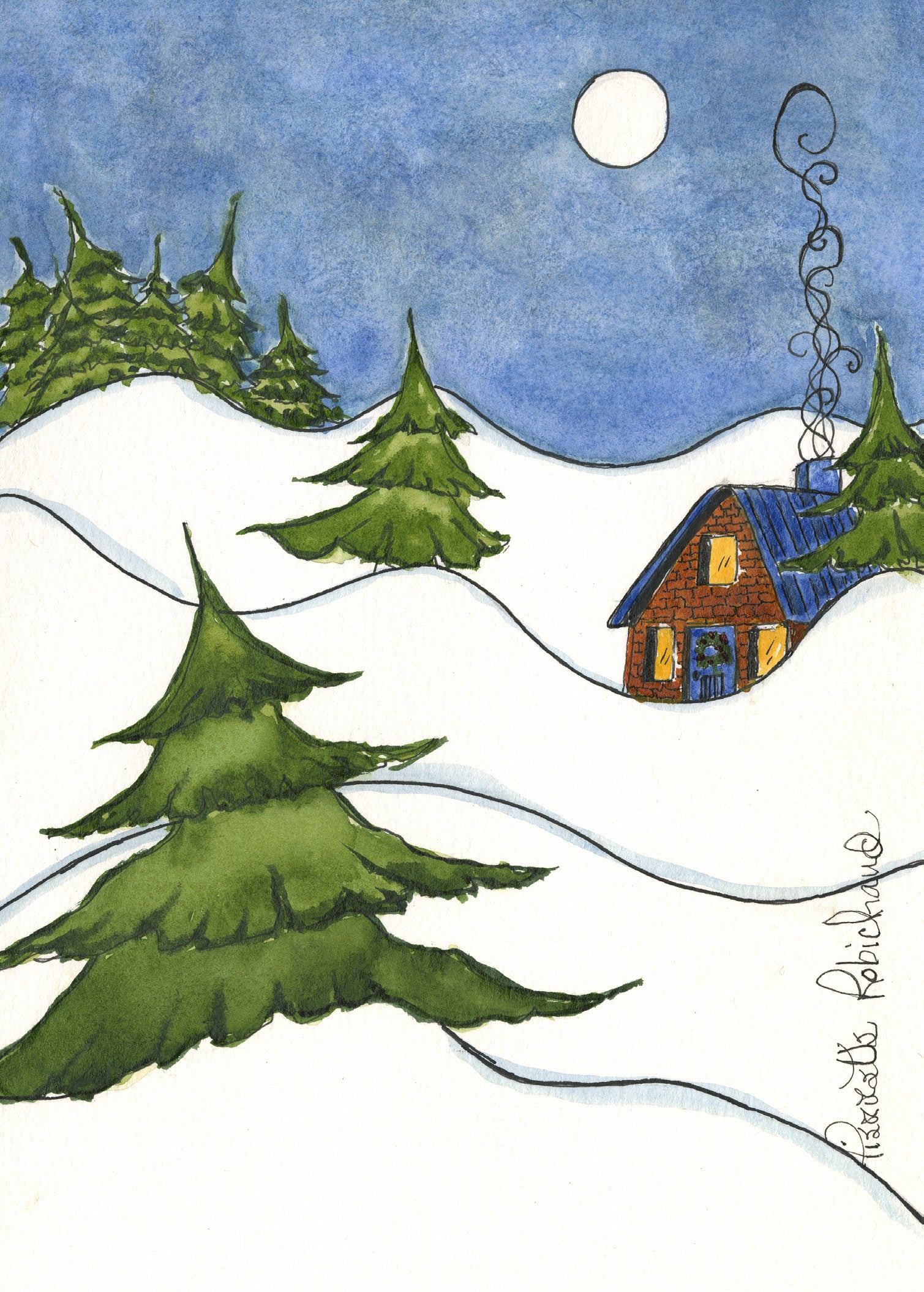 - L'artiste est Pierrette Robichaud - Reproductions d'aquarelles originales - Produit fabriqué au Nouveau-Brunswick, Canada - Les cartes sont numérotées et à collectionner - Carte 5 ”x 7” - Papier de haute qualité - Pas d'écriture sur toutes nos cartes - Les cartes sont laissées en blanc volontairement . Elles peuvent être offerts à N'IMPORTE QUI, N'IMPORTE OÙ!!!